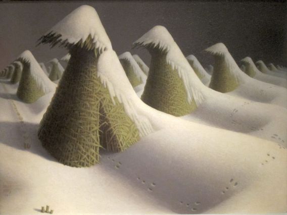 und schaut übern Schnee und das dunkelnde Land –