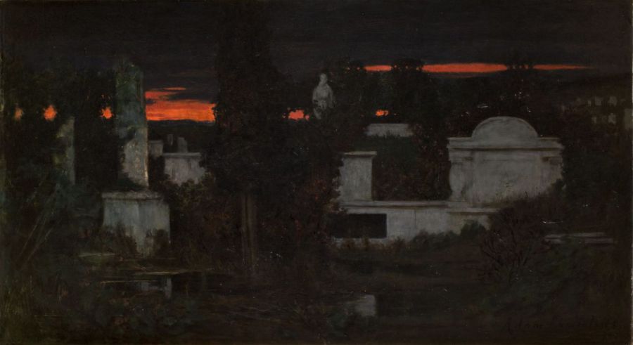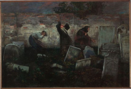 Düster im Friedhof flüstert der Herbst des Menschen Gedicht.