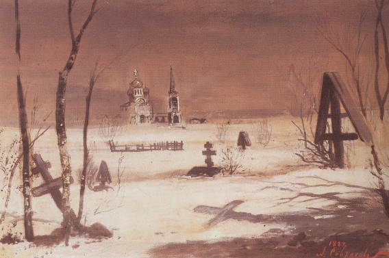 Düster im Friedhof flüstert der Herbst des Menschen Gedicht,