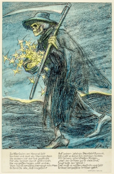 Nicht alle hier gezeigten Bilder und Gedichte haben einen unmittelbaren Bezug zu Allerheiligen/Allerseelen - auf Allerheilgen als Fest (s.o.) beziehen sich nur wenige Bilder und Gedichte - aber alle kreisen um den Themenbereich Friedhof, Tod und Trauer.