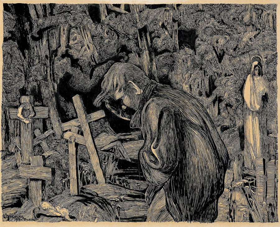Greisenhaft um die Kreuze herum