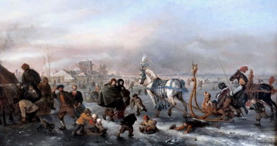 Hinaus zum Schlittschuhlauf.