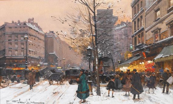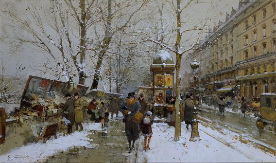 Eugène Galien-Laloue, Paris, Porte Saint-Denis in Winter