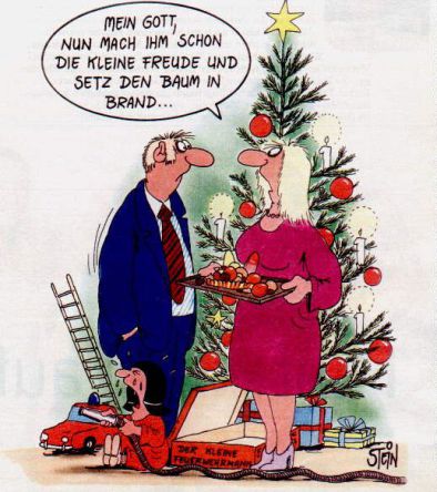Fritzchen: "Vater, der Christbaum brennt.“