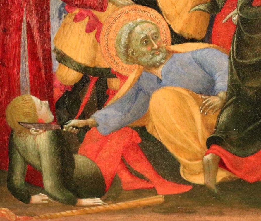 Joh 18, 6 Als er zu ihnen sagte: Ich bin es!, wichen sie zurück und stürzten zu Boden. 7 Er fragte sie noch einmal: Wen sucht ihr? Sie sagten: Jesus von Nazaret. 8 Jesus antwortete: Ich habe euch gesagt, dass ich es bin. Wenn ihr also mich sucht, dann lasst diese gehen! 9 So sollte sich das Wort erfüllen, das er gesagt hatte: Ich habe keinen von denen verloren, die du mir gegeben hast. 10 Simon Petrus, der ein Schwert bei sich hatte, zog es, traf damit den Diener des Hohepriesters und hieb ihm das rechte Ohr ab; der Diener aber hieß Malchus. 11 Da sagte Jesus zu Petrus: Steck das Schwert in die Scheide! Der Kelch, den mir der Vater gegeben hat - soll ich ihn nicht trinken?