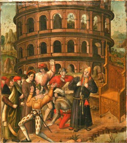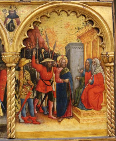 Antonio Vivarini e aiuti, Polyptychon der Passion, Christus vor Caiaphas