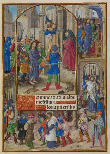 Meister des Dresdener Gebetbuches, Christus vor Caiaphas