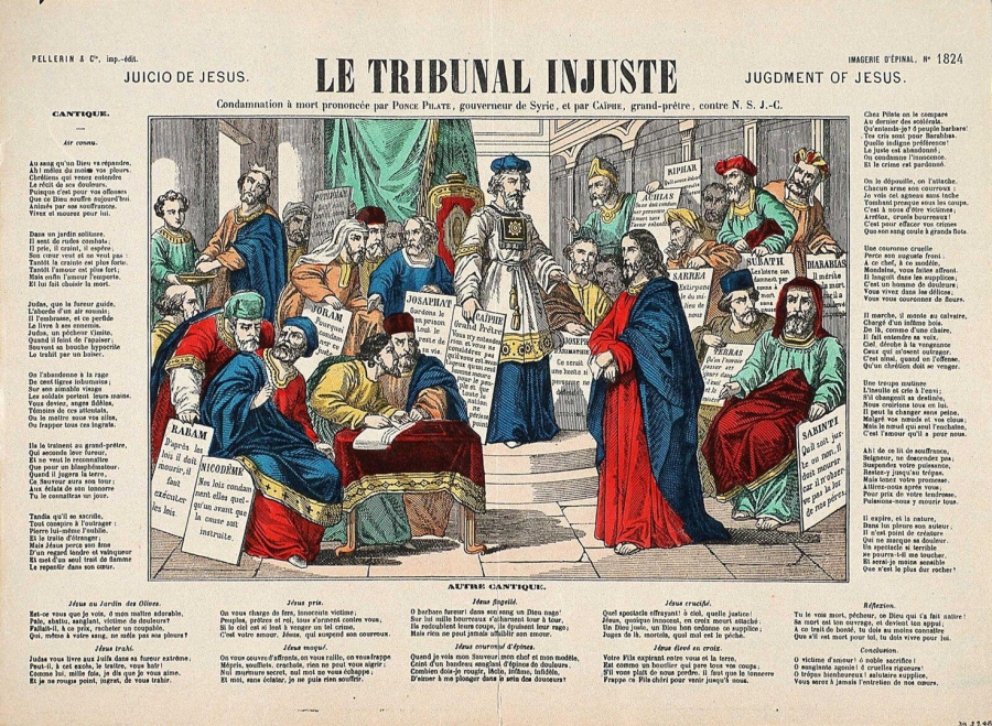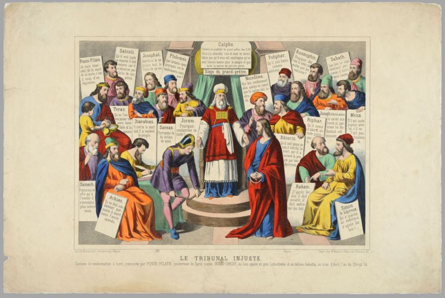 Jésus devant le Sanhédrin - Le tribunal injuste, Bilderbogen, Wissembourg, 19. Jahrhundert