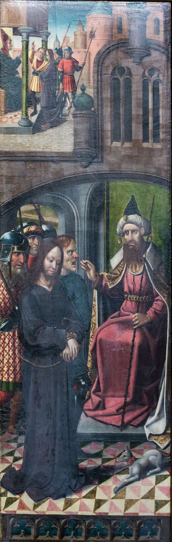 Unbekannter Meister, Christus vor dem Hohepriester, Seitenaltar des Neuberger Münsters, Neuberg an der Mürz, Steiermark, Österreich, um 1500