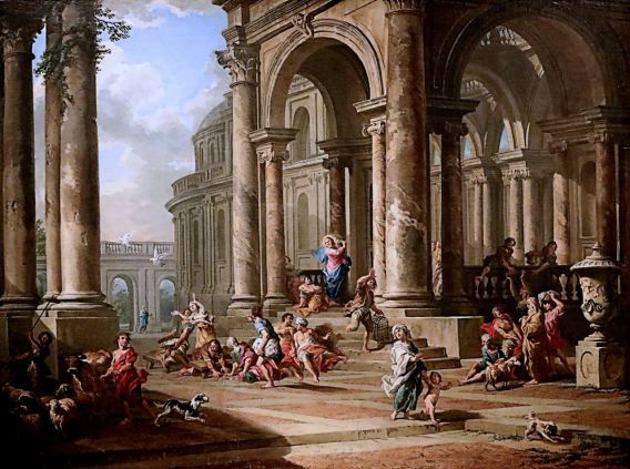 Giovanni Paolo Pannini, L'expulsion des changeurs du temple, 1724, Madrid, Thyssen-Bornemisza