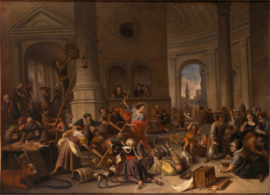 Jan Steen, De verdrijving uit de tempel - Austreibung der Händler aus dem Tempel, Museum De Lakenhal