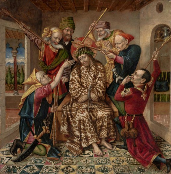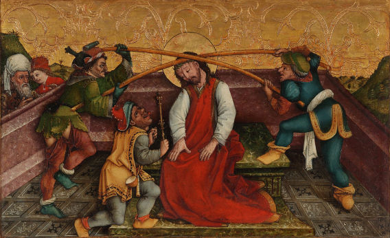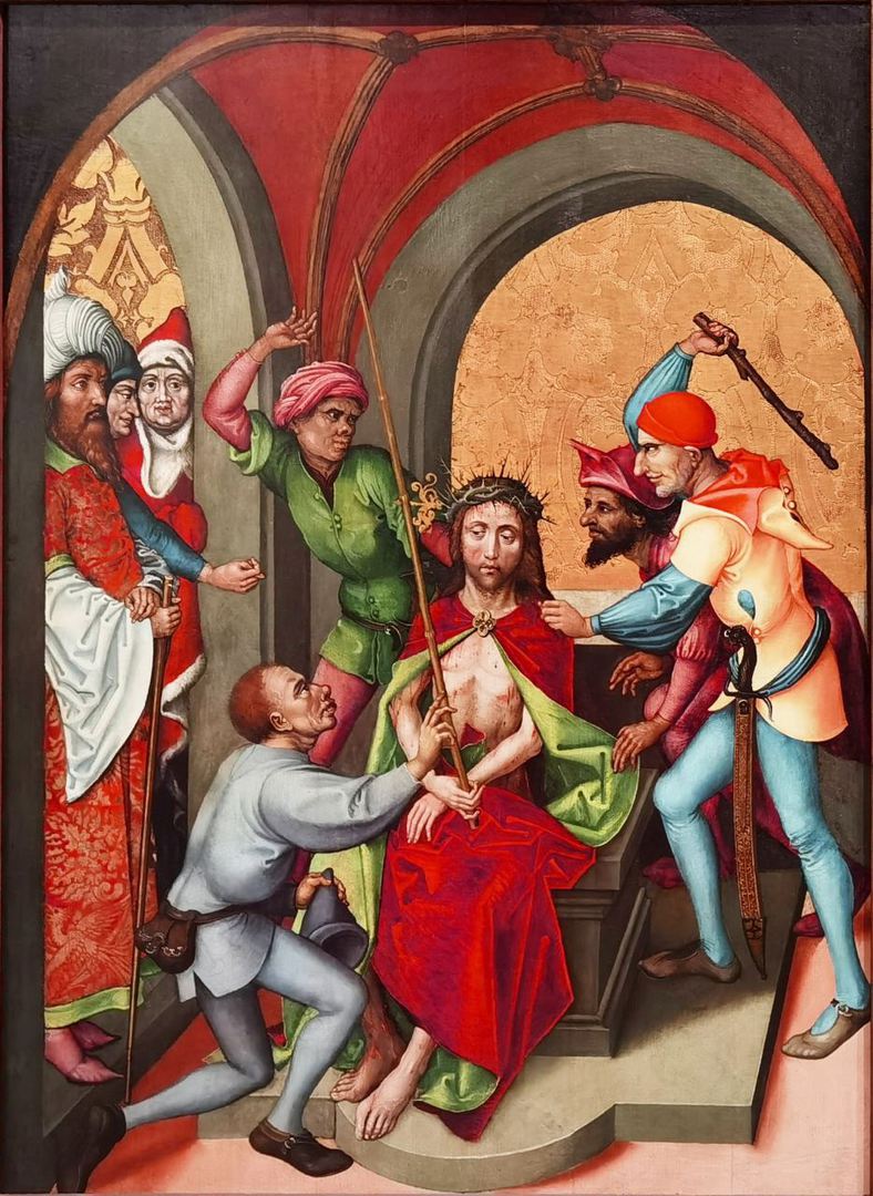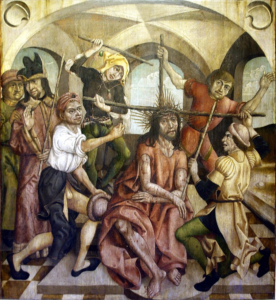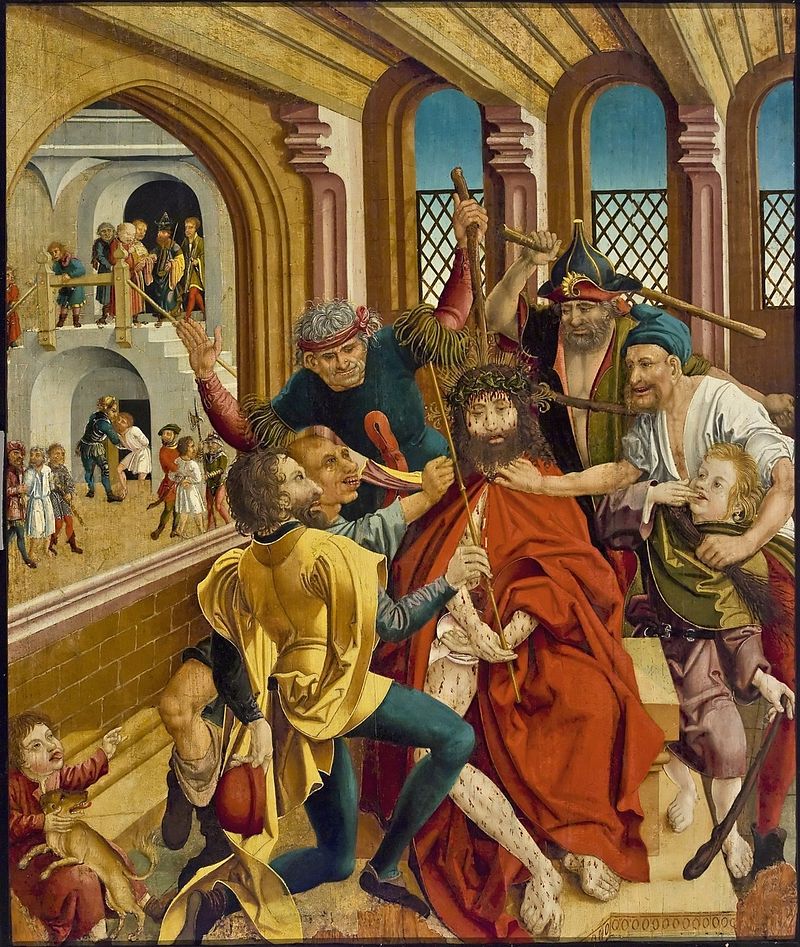 Mt 26 67 Dann spuckten sie ihm ins Gesicht und schlugen ihn. Andere ohrfeigten ihn 68 und riefen: Christus, du bist doch ein Prophet, sag uns: Wer hat dich geschlagen?