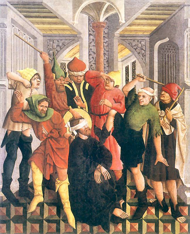 Mk 14 65 Und einige spuckten ihn an, verhüllten sein Gesicht, schlugen ihn und riefen: Zeig, dass du ein Prophet bist! Auch die Diener schlugen ihn ins Gesicht.